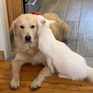 Кот пристает к собаке