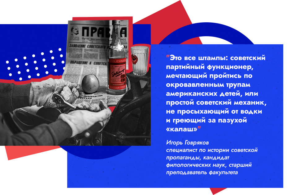 Все персонажи советского происхождения оказывались шаржированными, наполненными стереотипами, которые «копились столетиями».