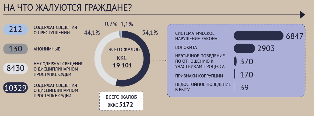 Один судья предложил оплатить истице ремонт телефона, если она заключит мировое соглашение. Другой отменил судебный приказ девятилетней давности, который долгое время исполнялся. Еще одна судья по полгода не писала решения и помечала, что дела «сданы в архив». Им всем выдали предупреждение. Всего же за первые полгода 2020 года к «дисциплинарке» привлекли 61 судью, большая часть нарушителей получила предупреждения и замечания.