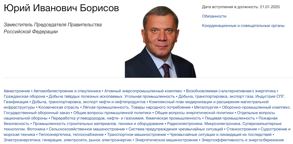 Заместитель Мишустина по вопросам оборонно-промышленного комплекса Юрий Иванович Борисов не выполнил 325 из 491 поручения, что соответствует 66% "просрочки".