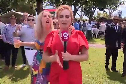 Австралийскую тележурналистку Ли Стил (Lee Steele) облизали в прямом эфире. Отрывок репортажа доступен на YouTube-канале Short Videos.