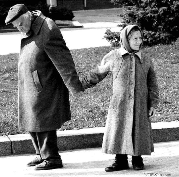 Мужчине 80 лет, ей не знаю, он всегда свою супругу держит за руку, где бы они не были..