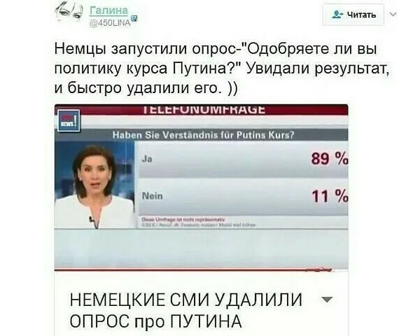 А зря. Мы с Наталииванной вообще не против, что бы Путин в Германию уехал. В кармандировку. Немцев в чуства привести.