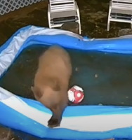 Мишка греется в бассейне