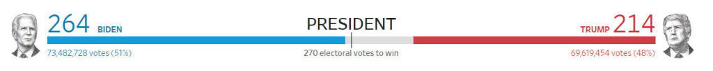 По выборщикам расклад не изменился: у Трампа - 214, у Байдена - 253 (264 по мнению и AP Fox News).