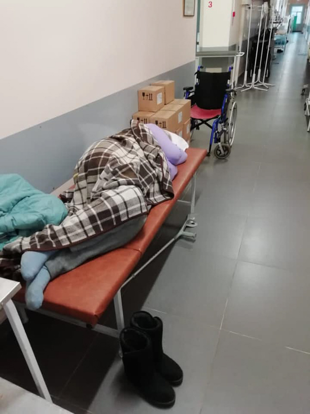 Сегодня в соцсетях начали распространяться фотографии лежащих на полу и на койках в коридоре пациентов. По заверениям родственников, которые обратились к средствам массовой информации, в госпитале «опять нет мест».