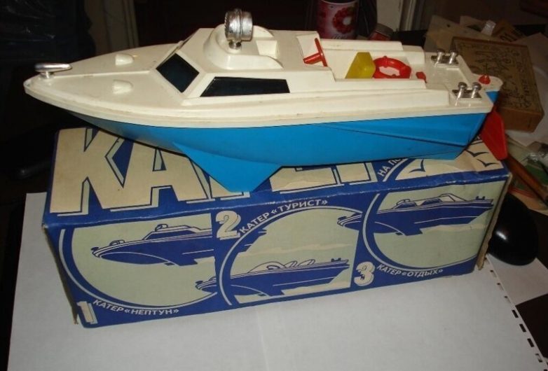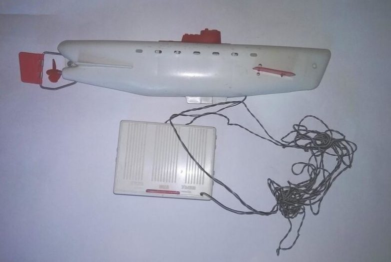 Судя по длинному шнуру, можно понять что с этой лодкой можно было играть на водоемах, правда не знаю на сколько была её водонепроницаемость, возможно у кого-то была такая, напишите..