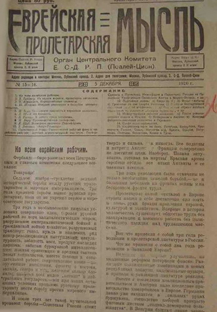 В 1919 г. от «Поалей Цион» откололись правая группировка («Поалей Цион» Украинской народной республики), продолжавшая сотрудничество с украинцами, и левая фракция, образовавшая на конференции в Гомеле Еврейскую коммунистическую партию «Поалей Цион» (август 1919 г., центральный печатный орган — журнал «Накануне», 1919 - 1921 г.). В августе 1920 г. ЕКП «Поалей Цион» вместе с родственными ей партиями ряда стран (Австрии, Италии, Латвии, Литвы, Польши и др.) создала Всемирный еврейский коммунистический союз «Поалей Цион» (Коммунистический Вельтфарбанд), активно пропагандировала сионизм и идею проникновения (через структуры Коминтерна) на Ближний Восток. В 1919 - 1922 гг. после ожесточённой идеологической и политической борьбы с РКП (б) ЕКП «Поалей Цион» отказалась от сионистской идеологии и заявила о разрыве с Коммунистическим Вельтфарбандом. В декабре 1922 г. ЕКП «Поалей Цион» в советских республиках самораспустилась. Часть членов партии, перешедших на большевистские позиции, была принята в ряды РКП (б), другие отошли от политики, а представители правого крыла оформились в Еврейскую рабочую коммунистическую партию. Последние группы «Поалей Цион» в России прекратили своё существование летом 1928 г.