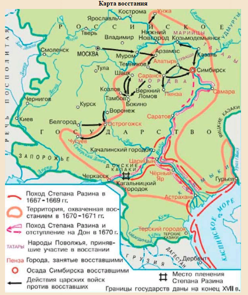 Можно говорить, что именно с весны 1670 года восстание под предводительством Разина перешло во вторую стадию. Если раньше основные события развивались за пределами России, то теперь Разин начал активную борьбу против бояр.