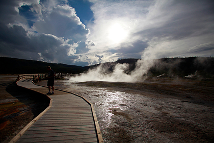 Инцидент произошел в начале августа в национальном парке Йеллоустоун. Мужчину из штата Айдахо заметили около бассейна гейзера Шошон в составе группы из десяти человек.