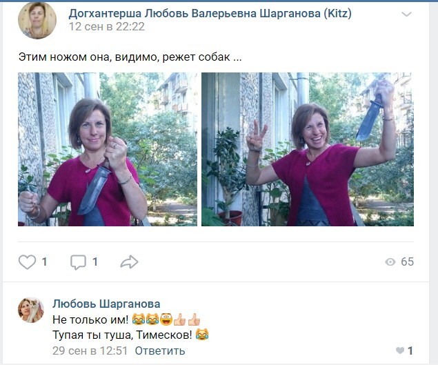 Эта дама не скрывает, что, в свободное от музицирования время, развлекается убийством собак, то есть состоит в преступном сообществе с самоназванием "догхантеры" :
