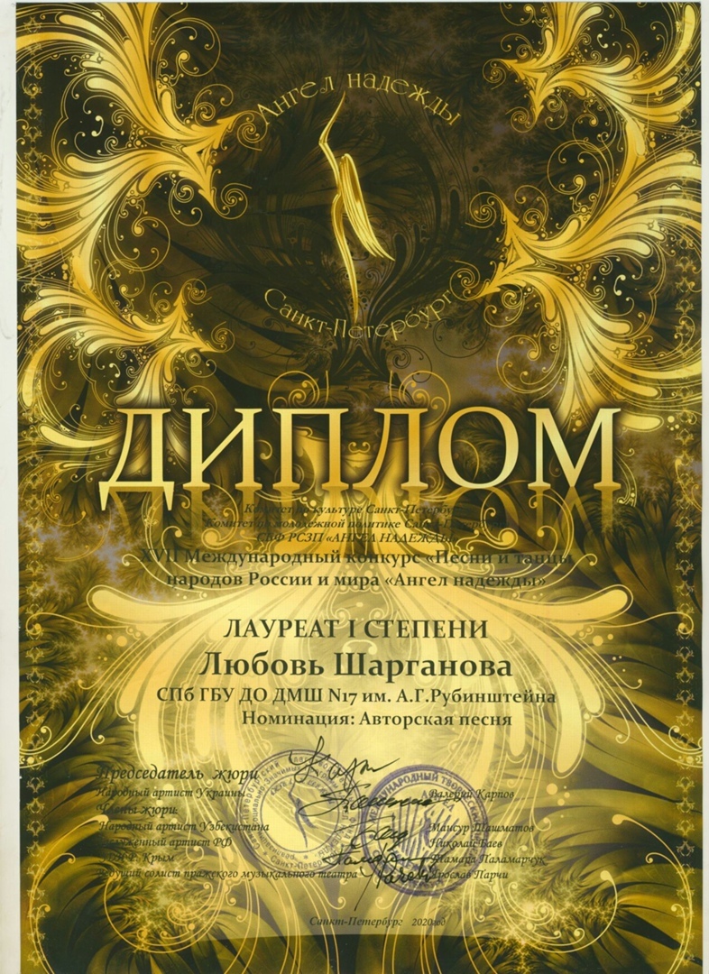 31 октября 2020 года Комитет по культуре Санкт-Петербурга совместно с Комитетом по молодежной политике провёл XVII Заочный международный конкурс “АНГЕЛ НАДЕЖДЫ" .