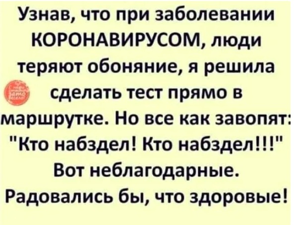 Вы молодец! А кто сорказничает-умничает, пусть в случае заболевания короной-19 лечится дома и не отвлекает медиков от больных!.