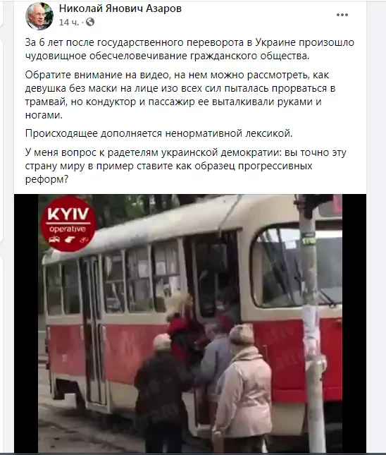 «Обратите внимание на видео, на нем можно рассмотреть, как девушка без маски на лице изо всех сил пыталась прорваться в трамвай, но кондуктор и пассажир ее выталкивали руками и ногами. Происходящее дополняется ненормативной лексикой».