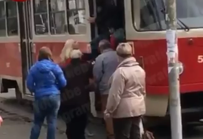 На Украине женщину избили ногами за попытку сесть в трамвай без маски