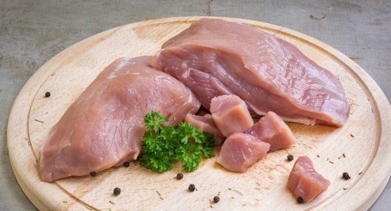 Почервину (мясо с салом) порежь маленькими кубиками. Свинину порежь на средние, куриное филе на большие кусочки.