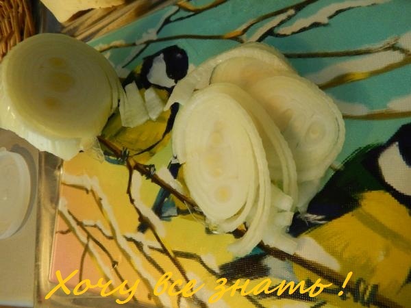 Луковицу чистим и режем не мелко – кольцами или полукольцами.
