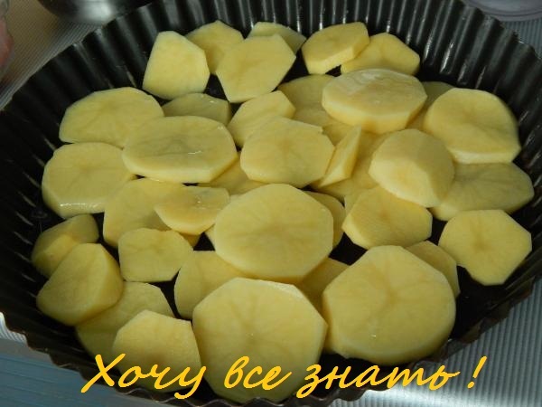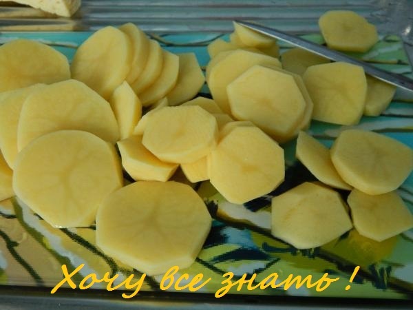 Картофель моем, очищаем от кожуры и режем на колечки.