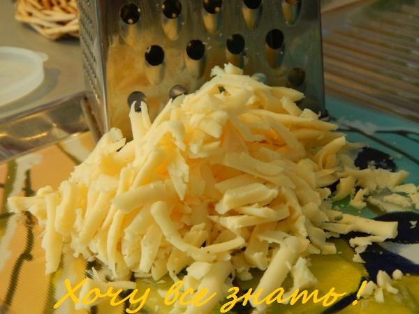 Трём на крупной тёрке любой твёрдый сыр, какой есть в холодильнике.