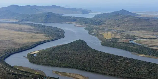 Граница с КНДР на реке Туманная, в Хасанском районе Приморья. Здесь находится остров Олений, на который претендует Южная Корея