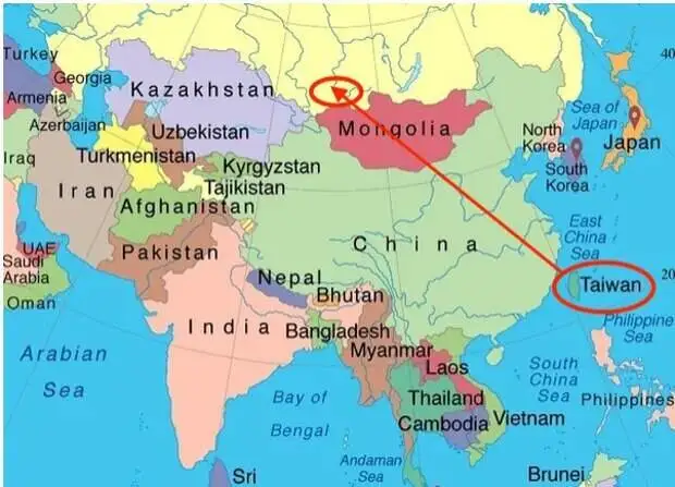 Претензии Тайваня также исходят к историческим переделам земли. Как известно, остров Формоза стал последним оплотом гоминьдановского Китая и изгнанного коммунистами из материковой части страны генералиссимуса Чан Кайши. Руководство непризнанного Тайваня и по сей день объявляет себя законным китайским правительством, отвергая договоры, заключенные КНР. На этом основании остров имеет претензию, ни много, ни мало, на российскую Тыву.