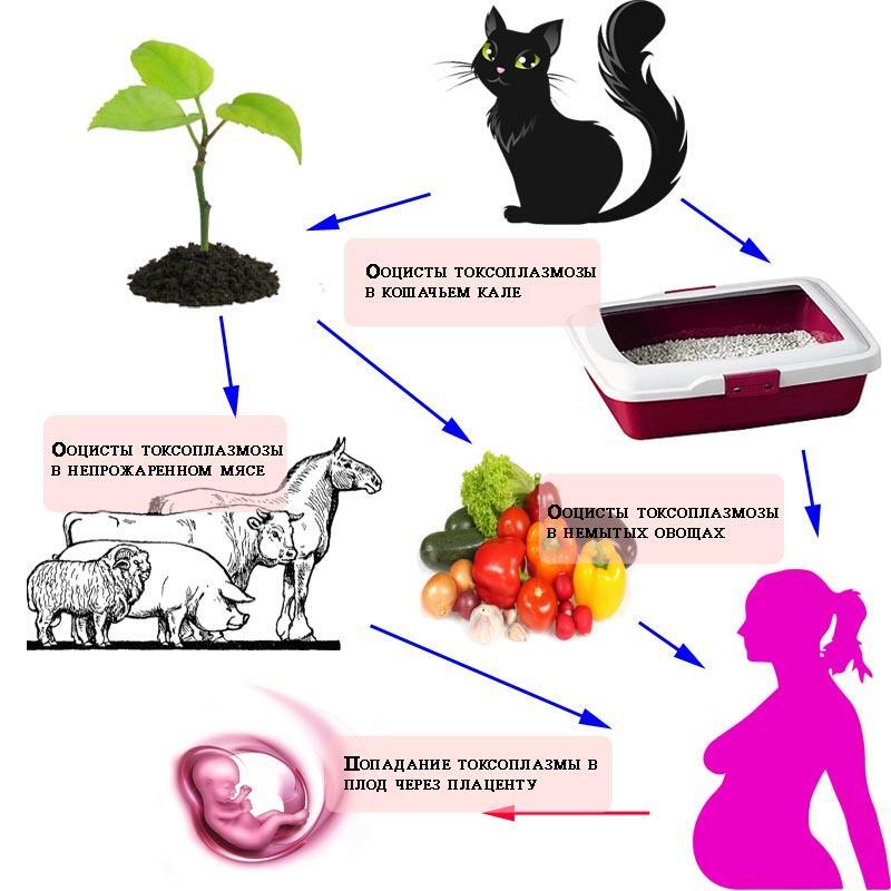Источником Токсоплазмоза являются кошки, ибо половое размножение токсоплазм происходит только в кишечнике кошек и других представителей семейства кошачьих.
