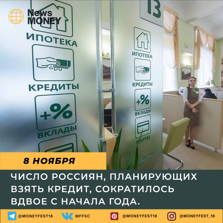 Число россиян, планирующих взять кредит, сократилось вдвое с начала года.