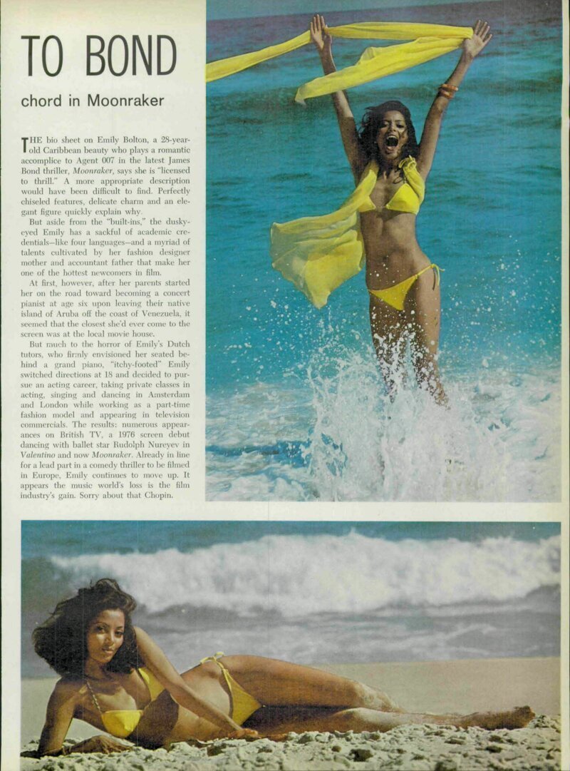 Анджела Скаулар (1945-2011) начала кинокарьеру, сыграв эпизод у Чаплина в "Графине из Гонконга" (1967). Кроме официальной бондианы она также сыграла в пародиыйном "Казино "Рояль".