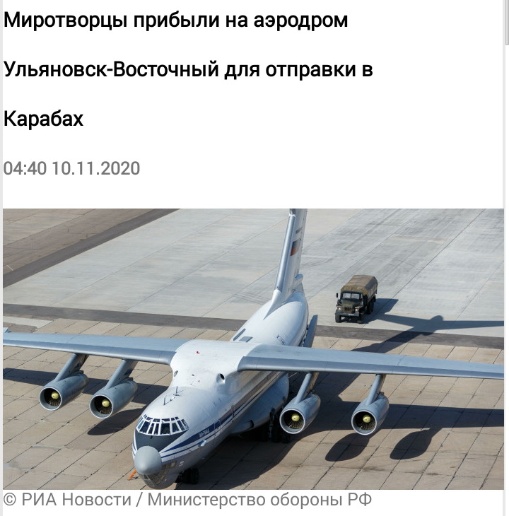 Российские миротворцы отправились в Нагорный Карабах, переброска осуществляется самолетами Ил-76 из Ульяновска, сообщили в Минобороны.