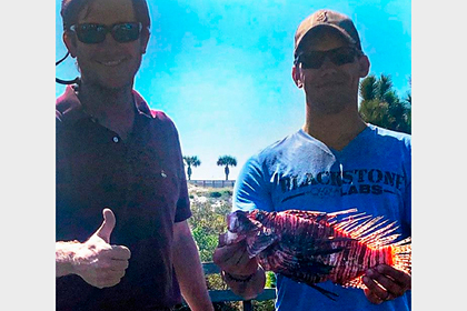 Рыбак поймал рекордно большую смертельно ядовитую колючую рыбу