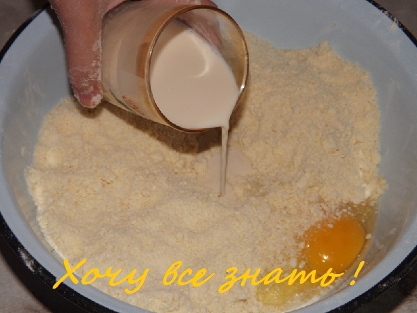 Далее в масляно-мучнистую смесь вбиваем одно яйцо и выливаем теплое молоко. Если используются свежие дрожжи, то их следует вводить в тесто в данный этап приготовления, разведенными в молоке.