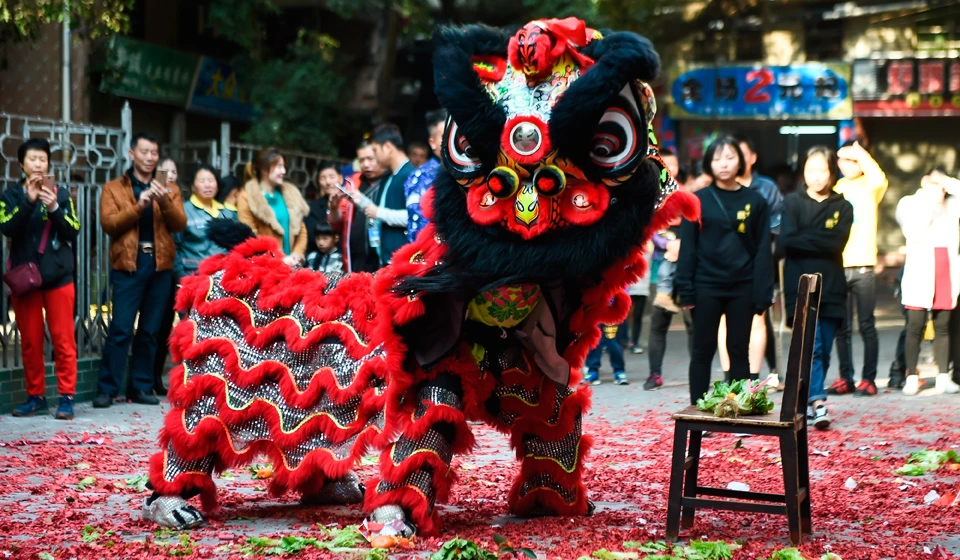 Навестив всех родственников и соседей, китайцы выходят на народные гулянья с традиционными танцами. Как правило, к традиционным относятся танец льва (танцоры, находясь внутри фигуры льва, имитируют движения этого животного) и танец дракона (специальная команда людей, держа на шестах изготовленного из бумаги дракона, двигается таким образом, чтобы змееподобное тело совершало волнообразные движения).