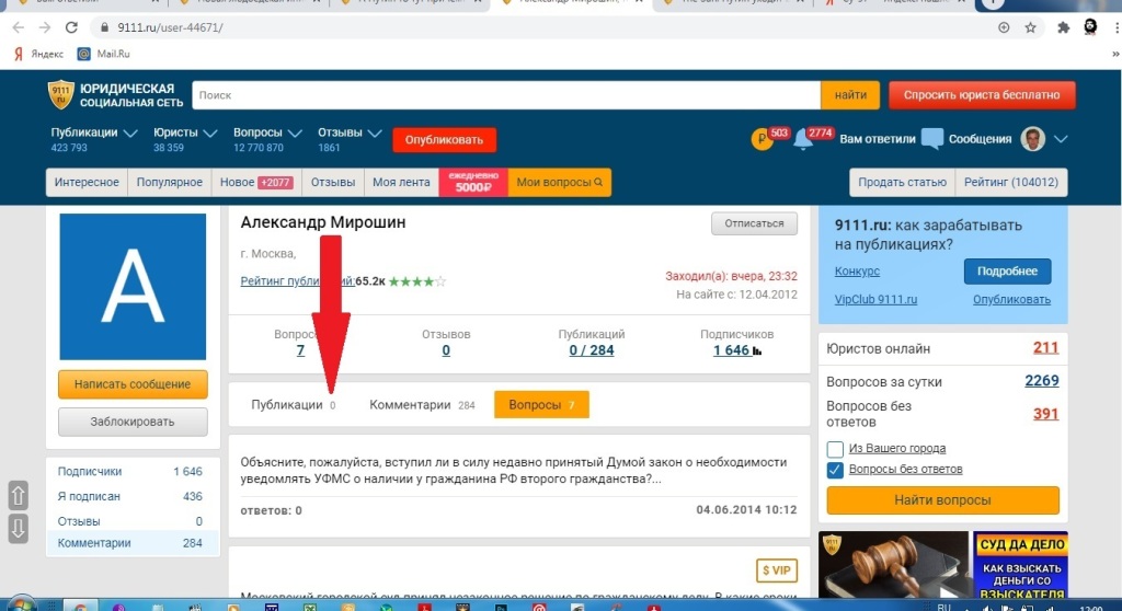 Поэтому у Вас тоже, как и у Александра Мирошина, ни одной публикации на сайте?..