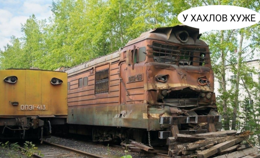 Хорошее фото! Но, тогда надо бы строчку в "пестне" немного подправить вот ТАК: "Вперёд летит наш паровоз летит - прямым ходом... под откос"