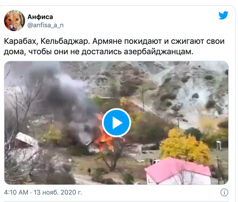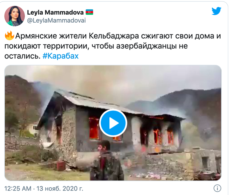 Валентин Николаевич, не согласна с вашим мнением. Армяне, захватив в 90 годах под шумок азербайджанские районы, варварски выгнав оттуда мирное население без имущества (поубивав большое количество людей), сейчас сжигают дома (хотя армянам дали возможность вывести все свое имущество), чтобы азербайджанцы в них не жили. Многие из этих домов были захвачены в 90 годы, так как азербайджанцы не сжигали свои дома, уходя. Армяне начали эти несправедливые события сами с подачей Горбачева. С событий в Карабахе начался развал Советского Союза. Сейчас Азербайджан остановил войну как только они согласились капитулировать и освободить все территории в границах бывшего СССР, согласно резолюциям и решениям ООН. Минская группа почти 30 лет пыталась методом переговоров выполнить резолюции ООН. Но ничего не получалось. Теперь военным путём Азербайджан выполнил резолюции ООН. Военное превосходство Азербайджана было подавляющим. При любом руководстве и управлении у Армении не было шансов сохранить за собой оккупированные территории. После взятия Шуши в котле осталась армянская армия почти без оружия. Лачинский коридор был перекрыт. Они умоляли своего презедента подписать капитуляцию. Зачем гражданам России армянской национальности участвовать в войне на территории Азербайджана? Азербайджан не нападал на территорию Армении и не захватил ни пяди международно признанной территории Армении. Так что из подмосковных кафе они могли только наблюдать. Армянское государство (правящая элита и народ) должно хотя бы сейчас не озлобляться (не сжигать дома, уходя, так как им это только в минус) и осознать, что посеяв зло, придется пожинать его плоды. P.S. Азербайджан обязался предоставить мирным армянским жителям Ханкенди (Степанакерта) гражданство Азербайджана. При этом армяне станут обладать всеми правами и обязанностями, как и всё население Азербайджана. А миротворцы будут следить за выполнением обоюдных обязательств сторон.