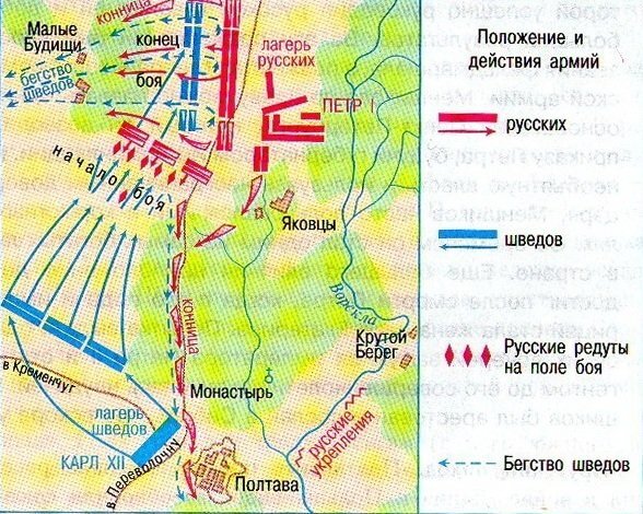 Полтавская битва 1709 года к моменту своего начала, после подхода основных сил русских, свела следующие силы сторон.