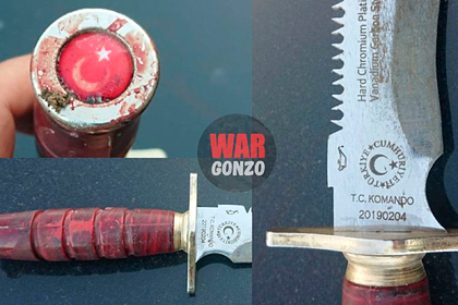 По его данным, в последний день войны, когда азербайджанская армия начала отступать на мартунинском фронте и бросила все силы на штурм города Шуши, карабахские бойцы нашли у одного из убитых противников номерной боевой нож. Этот нож был выпущен по заказу для элитного подразделения спецназа Турции. Данная находка, как отмечает WarGonzo, косвенно указывает на то, что среди отступающих под Мартуни были и турецкие военнослужащие.