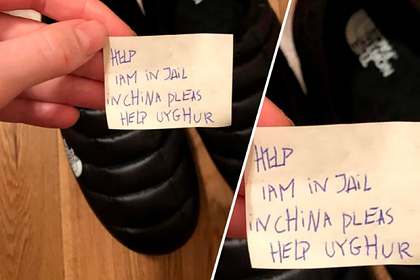 Покупатель Арслан опубликовал снимок черных кроссовок и клочка бумаги, на котором на английском языке синей ручкой написаны слова: «Помогите. Я в тюрьме в Китае. Пожалуйста, помогите. Уйгур». Мужчина попытался выяснить, кто написал записку, чтобы попытаться помочь ее автору. Он обратился в магазин, где приобрел обувь, затем написал двум дистрибьюторам, однако ни от кого не получил ответа.
