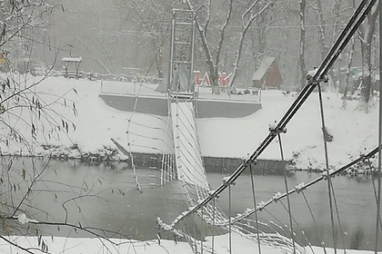 Недавно отремонтированный мост ушел под воду из-за снега