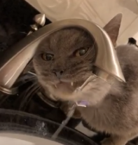 Кот пытается попить