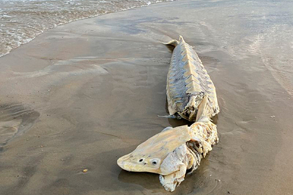 Длиннорылого осетра заметили люди, гулявшие у побережья океана. Они снимали полутораметровую рыбу на телефоны, пока ее разлагающуюся тушу относило волнами обратно в воду.