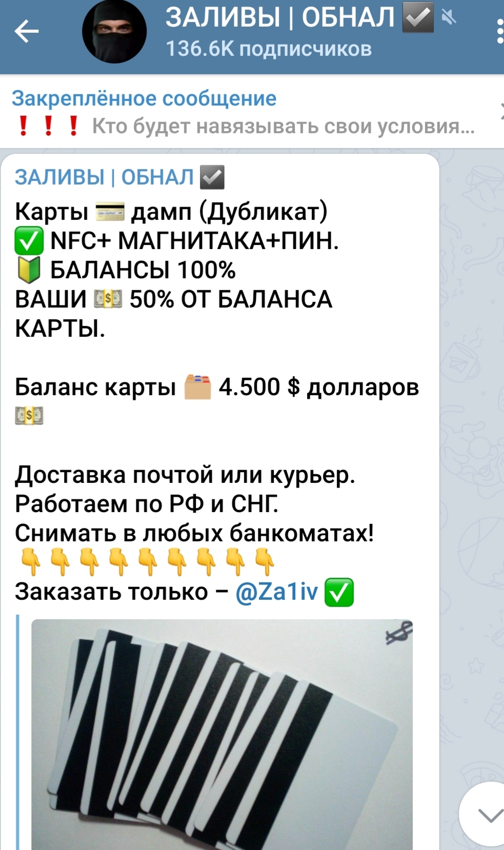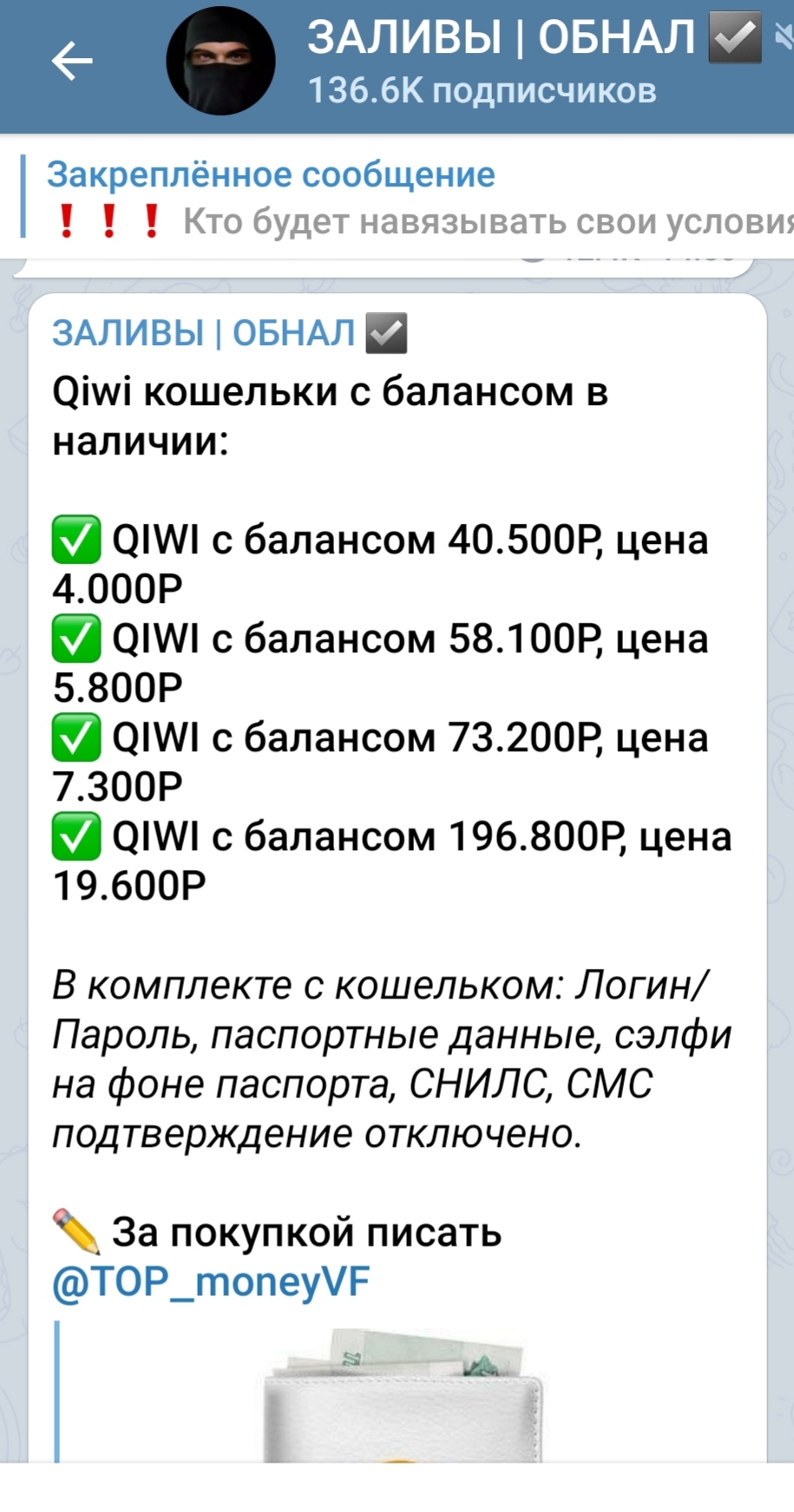За свои услуги данные лица просят 10% от суммы, позицианируя себя обнальщиками (занимаются незаконными банковскими операциями, легализуют денежные средства, которые добыты преступным путем). У них даже имеется свои правила😎. Схема заключается в том, что "утром деньги, вечером стулья". То есть, человек перечисляет на указанный ими счет свои деньги (10%) и как бы должен получить больше. НО! Через некоторое время человеку приходит сообщение, что Центральный Банк РФ заблокировал операции и они не могут предоставить человеку киви кошелек с большим балансом, либо перевести на его карту деньги. А далее просто открытая наглость! Перечисленные 10% человеку обратно не возвращаются, переписка в ту же минуту удаляется. Вуаля! Вас К И Н У Л И! Всю переписку ведут только в секретном чате, где, согласно политики социальной сети, нельзя сделать скриншоты. Я давненько слежу за данными субьектами😁😎. Пугает то, что количество подписчиков в их группах более 20 ТЫСЯЧ.