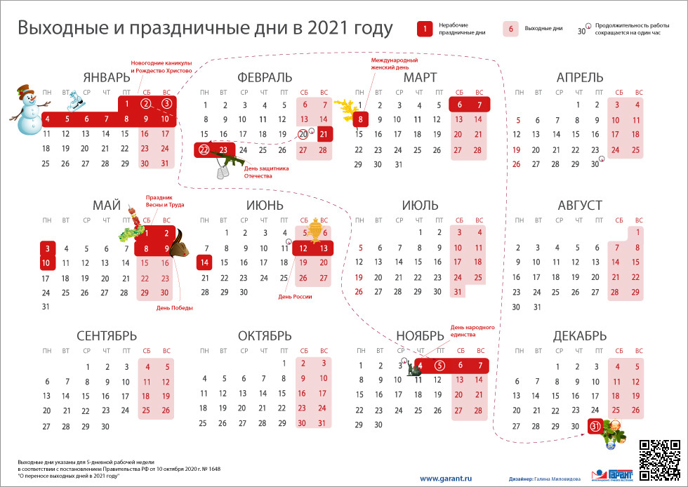Всего в 2021 году нас ожидает 247 рабочих и 118 выходных и праздничных дней. Напомним, что нерабочими праздничными днями в России являются: