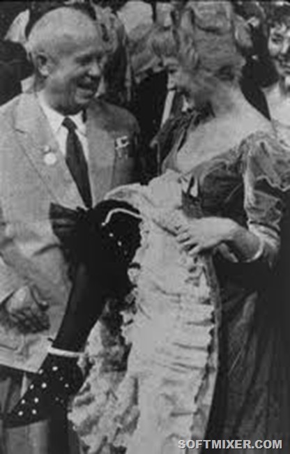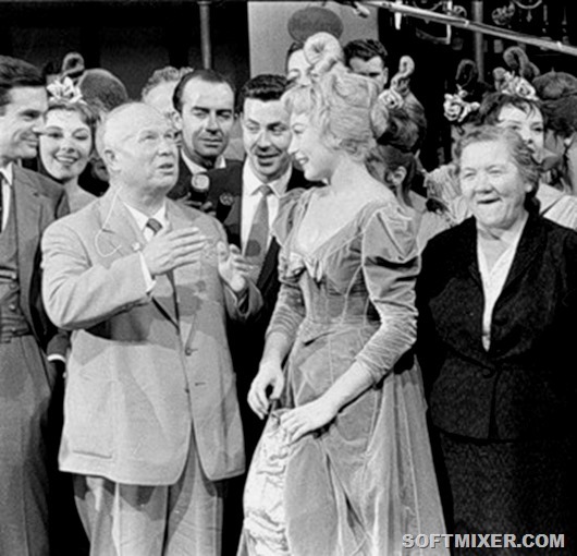 Первым из советских лидеров, кто столкнулся с проявлениями «секса» в капстранах и «дал им решительный отпор», оказался Никита Хрущев. В 1959 году во время визита в США он был приглашен посетить Голливуд. И хозяева решили удивить высокого советского гостя феерическим зрелищем.