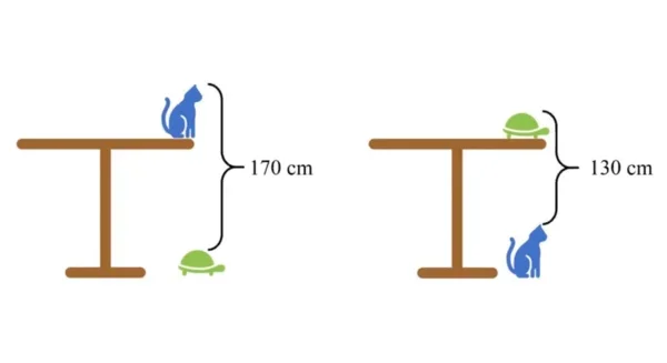 Людмила, решила путем логического размышления. Поставила стол на стол вакантные места заполнились животными, осталось два стола высотой 300 см, разделила пополам. Причем решила быстро, долго искала данную публикацию, вернее, ее автора.
