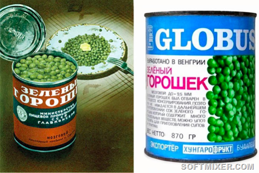 В ряду импортных консервов существовал популярный венгерский зелёный горошек фирмы Globus. Эти консервы были эталоном вкуса и качества, и некоторые считали венгерский горошек гораздо вкуснее свежего с грядки.