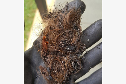Лиза Лунем (Lisa Lunam) обнаружила, что горшок, в котором росли ее каладиумы, вместо почвы заполнен человеческими волосами. Она сфотографировала пугающую находку и выложила снимок в Facebook****.