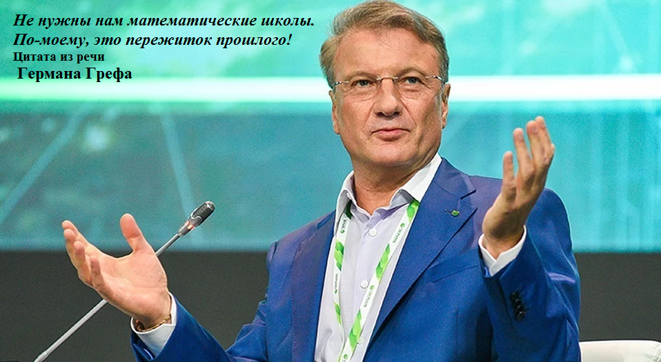Также напомню слова прогрессивного менеджера Германа Грефа, что нашей стране не нужны математические школы, не нужны математики и программисты, изучение математики вредно.