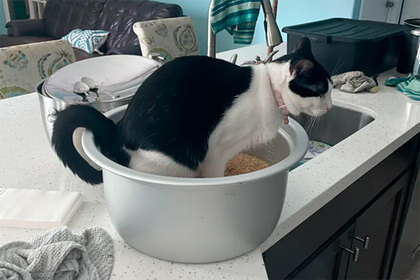 Хозяйка написала, что оставила питомца без присмотра всего на минуту: во время готовки она отвернулась от стола. Взглянув на таз с рисом, она увидела свою кошку, которая в тот момент уже мочилась на еще не приготовленное блюдо. Судя по всему, животное приняло таз за кошачий лоток.