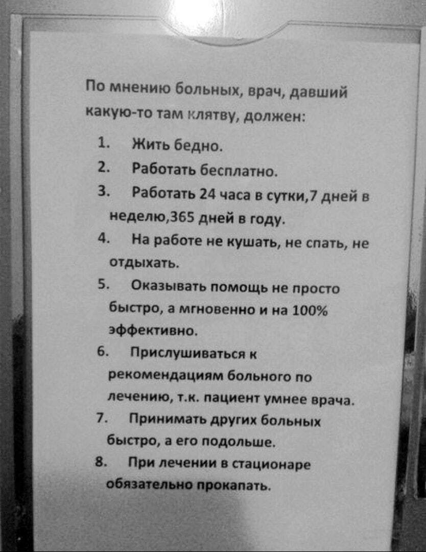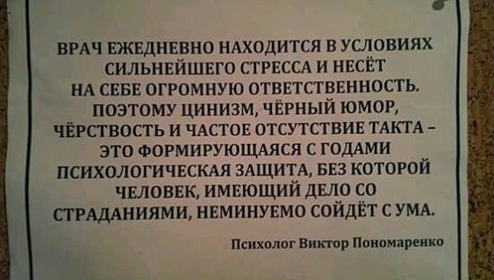 Грустный юмор, но он нужен. Медики не железные и не бессмертны.